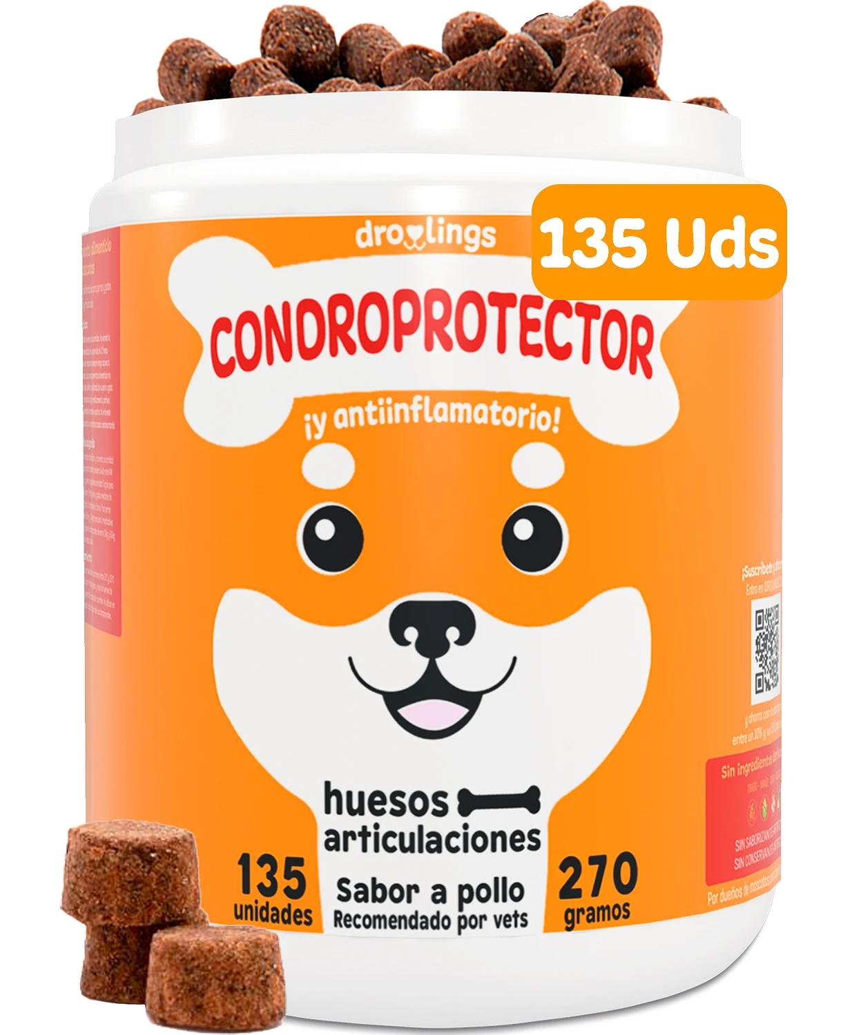 Los condroprotectores para perros son suplementos que ayudan a mantener saludables las articulaciones de tu mascota. Contienen ingredientes como glucosamina o condroitina entre otros, ayudan a reparar el cartílago y calmar la hinchazón. Son muy útiles para perros con dolor en las articulaciones, como aquellos con artritis, y para perros grandes o mayores. Hagamos que tu amigo peludo se mueva mejor y se sienta cómodo, para que pueda estar más animado y tranquilo.