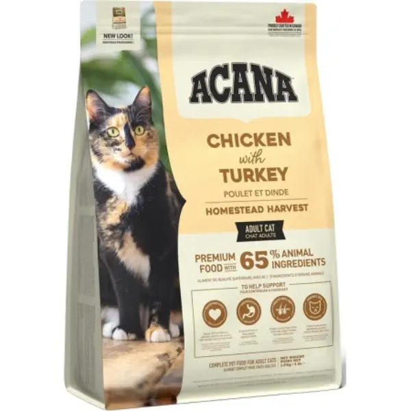 Pollo fresco (17%), pollo deshidratado (16%), pavo deshidratado (13%), avena decorticada, guisantes enteros, grasa de pollo (7%), lentejas verdes enteras, garbanzos enteros, lentejas rojas enteras, huevo fresco (4%), pavo crudo (4%), fibra de lenteja, aceite de pescado (1%), pato crudo (1%), menudillos frescos de pollo (hígado, corazón, molleja) (1%), hígado de pavo crudo (1%), algas secas, calabaza butternut fresca entera, calabaza fresca entera, arándanos rojos enteros, arándanos azules enteros.Aditivos (por kg):