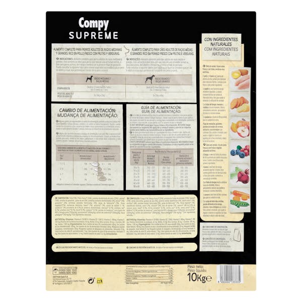 Compy Mercadona Comida perro adulto Supreme pollo fresco razas medianas y grandes 10kg