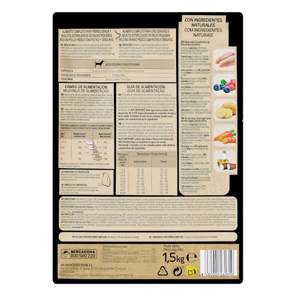 Especificaciones: Compy Mercadona Senior esterilizados Supreme razas pequeñas 1.5kg