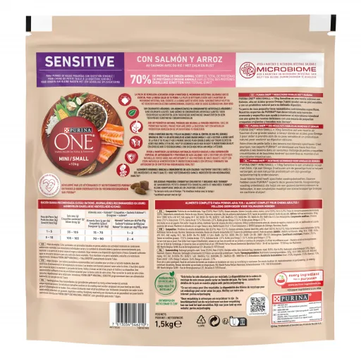 Especificaciones: PURINA ONE Pienso Mini Dog Delicate Salmon y Arroz 1