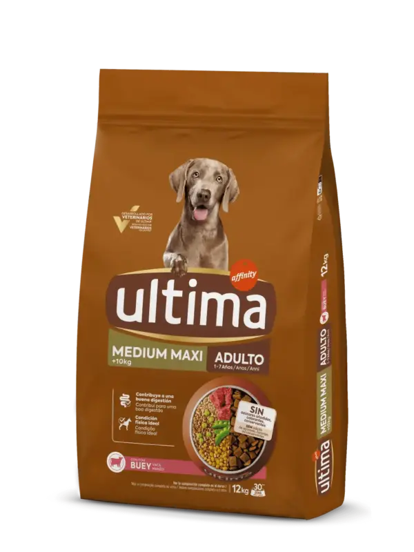 Especificaciones: Ultima Medium-Maxi Adulto con Buey 3kg